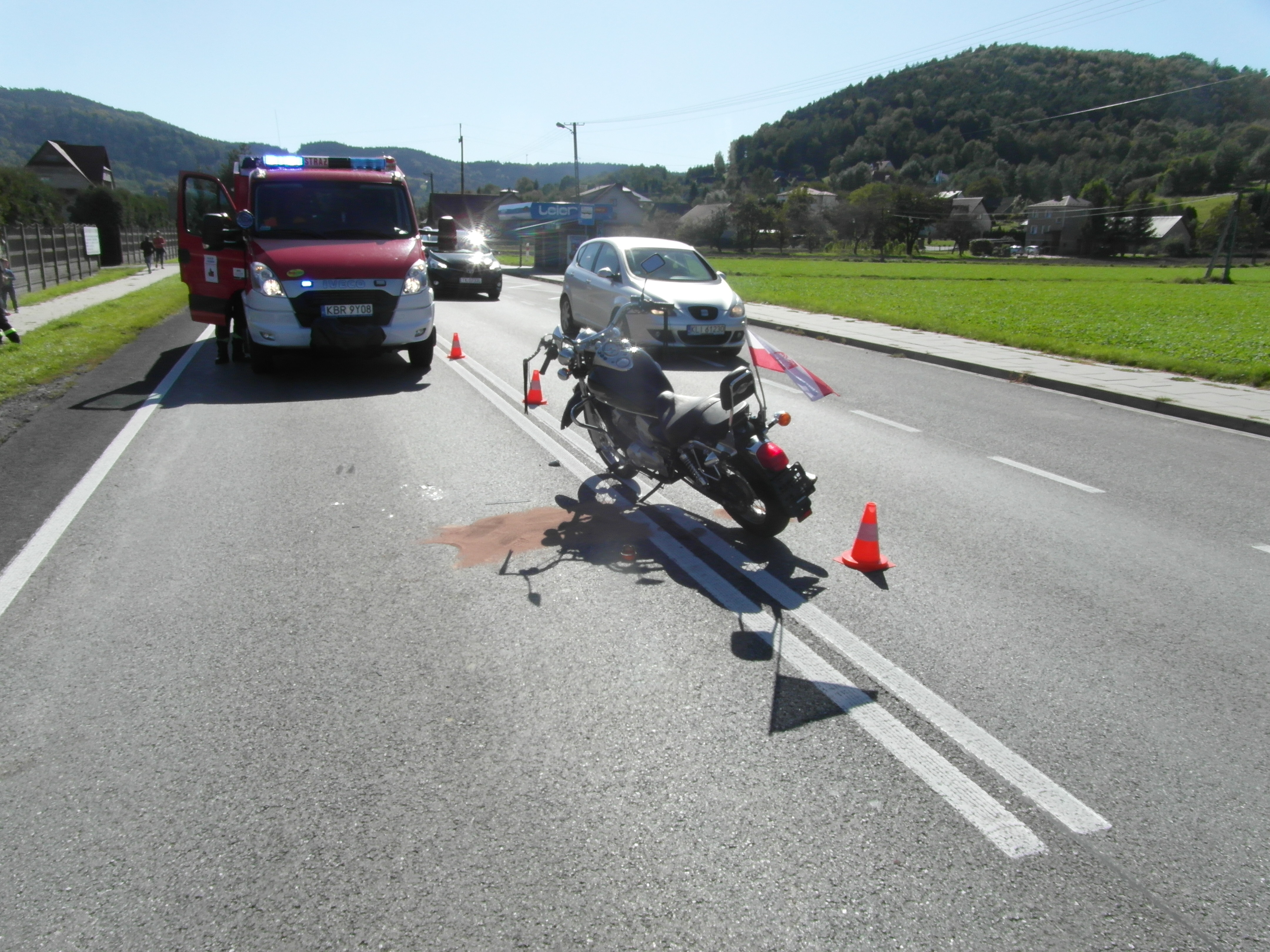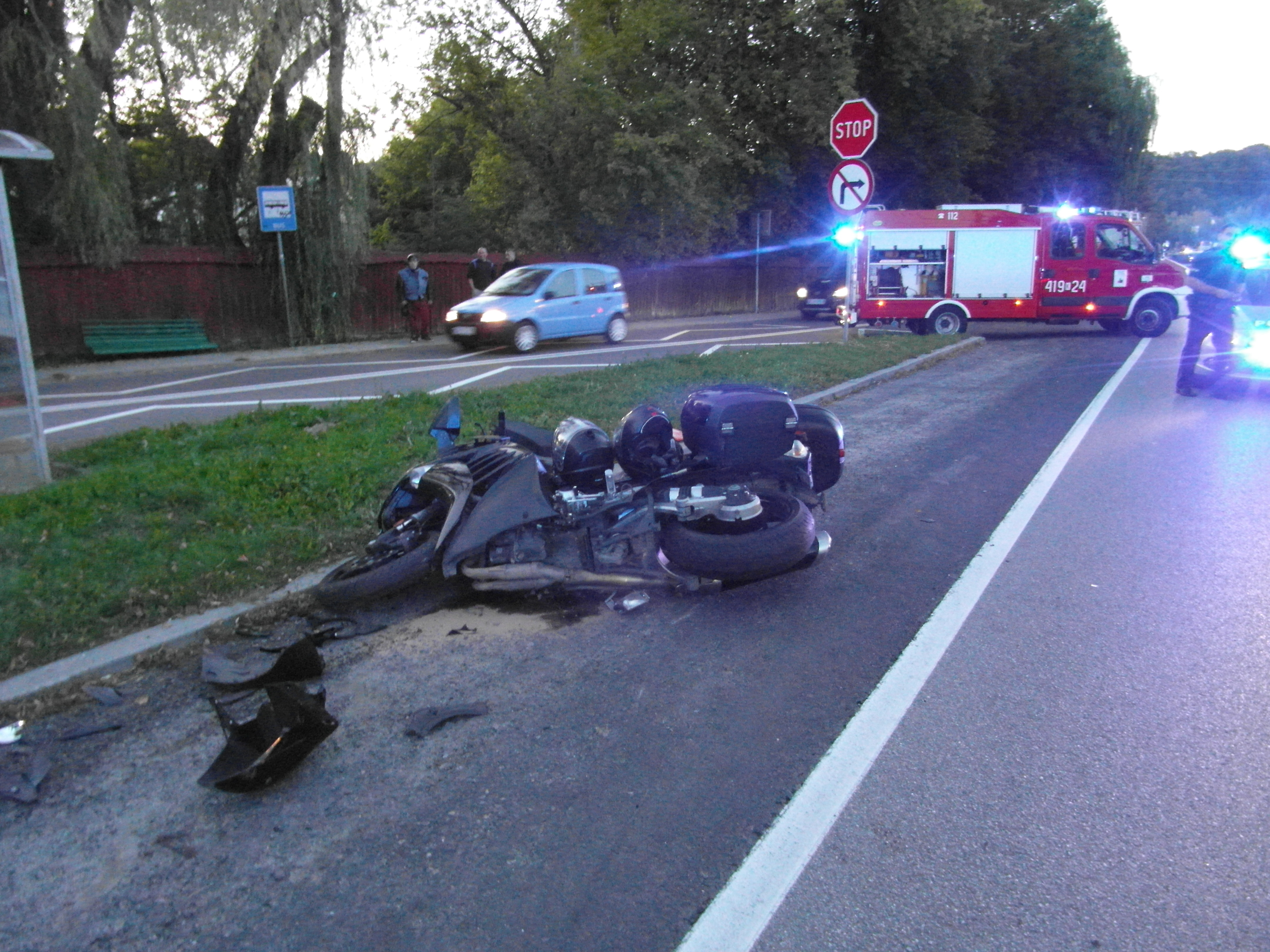 Do drugiego zdarzenia doszło w godzinach wieczornych. W wyniku zderzenia samochodu osobowego z motocyklem  – ucierpiały 2 osoby. Konieczna okazała się interwencja 2 Zespołów Ratownictwa Medycznego.