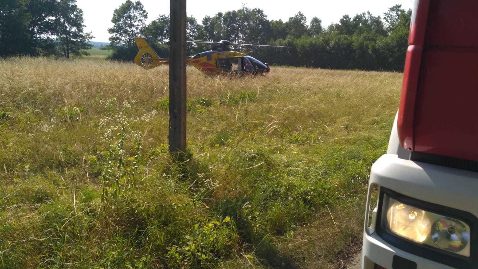Śmigłowiec LPR ewakuował rannego w pożarze traw w Borzęcinie / zdjęcia / 26 czerwca 2019 r.